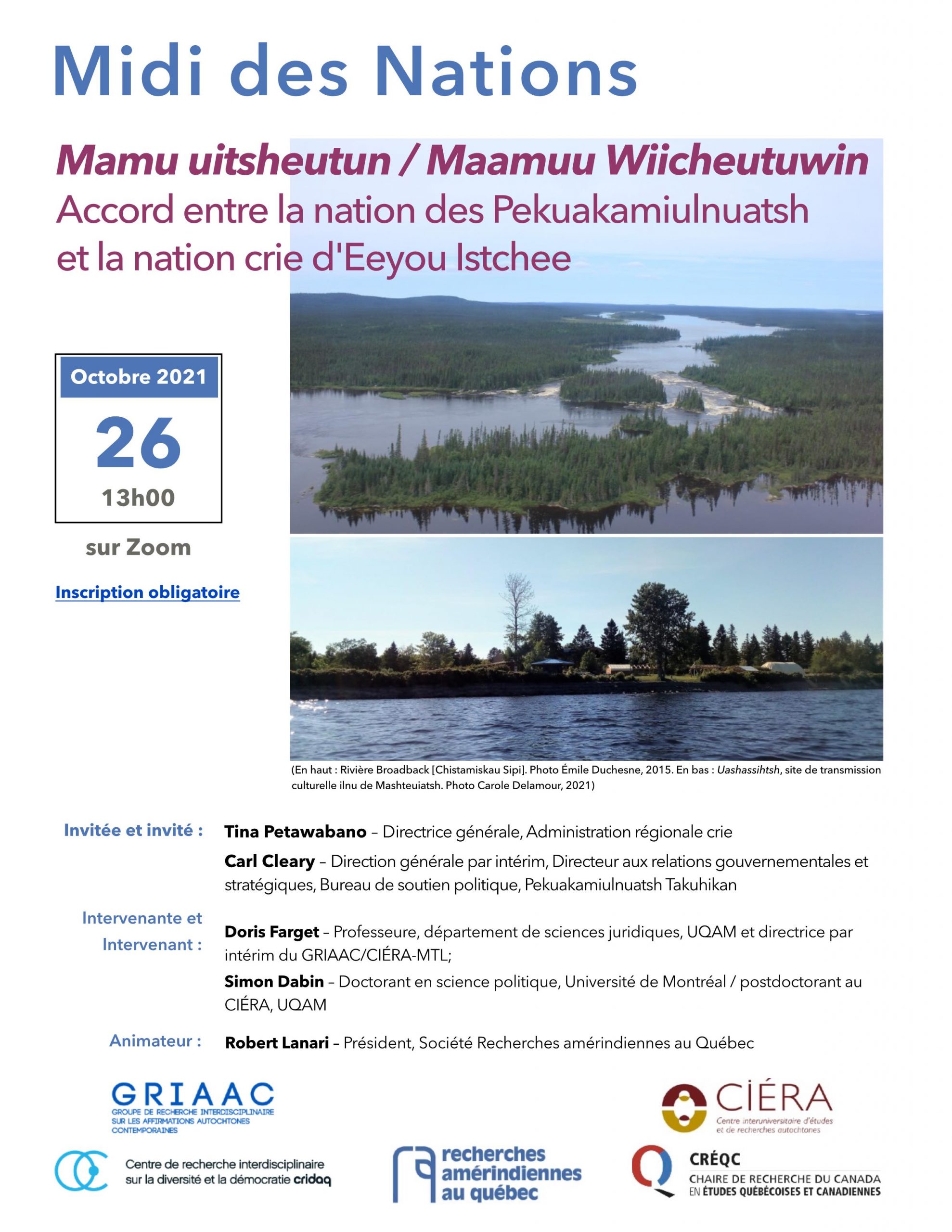 Midi des Nations – Mamu Uitsheutun/Maamuu Wiicheutuwin : Accord entre la nation des Pekuakamiulnuatsh et la nation crie d’Eeyou Istchee